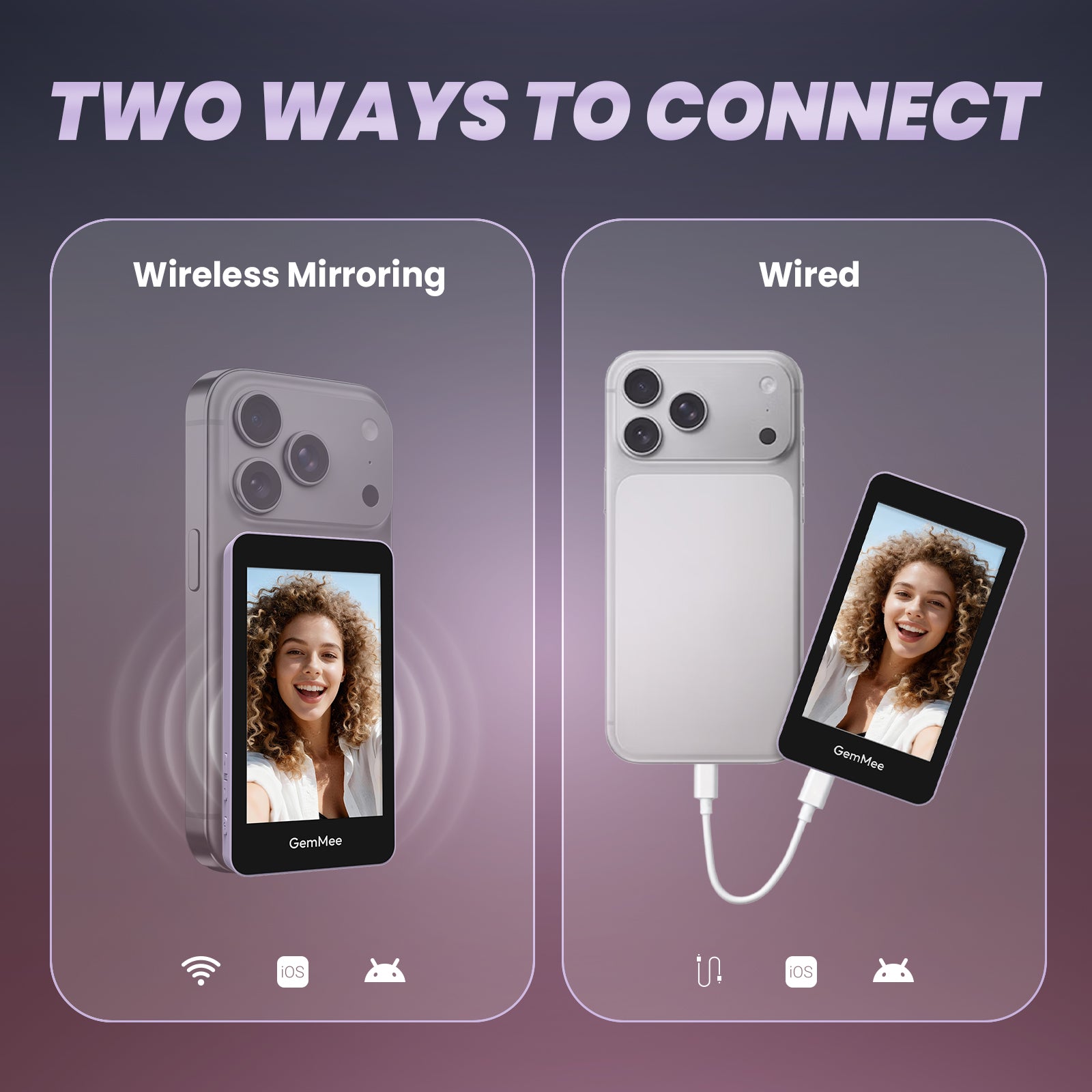 GemMee G100 Magnetic Smartphone Selfie Monitor - Purple