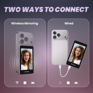 The GemMee Selfie Monitor Screen integrates a 3000mAh battery that delivers up to 6 hours of runtime per charge and offers over 60% more capacity. Quick-press on the power button to sleep/wake the screen between takes to save power, and it will also automatically shut down after 5 minutes of inactivity to prevent unnecessary battery drain. Besides, it can function as a power bank to charge your phone.